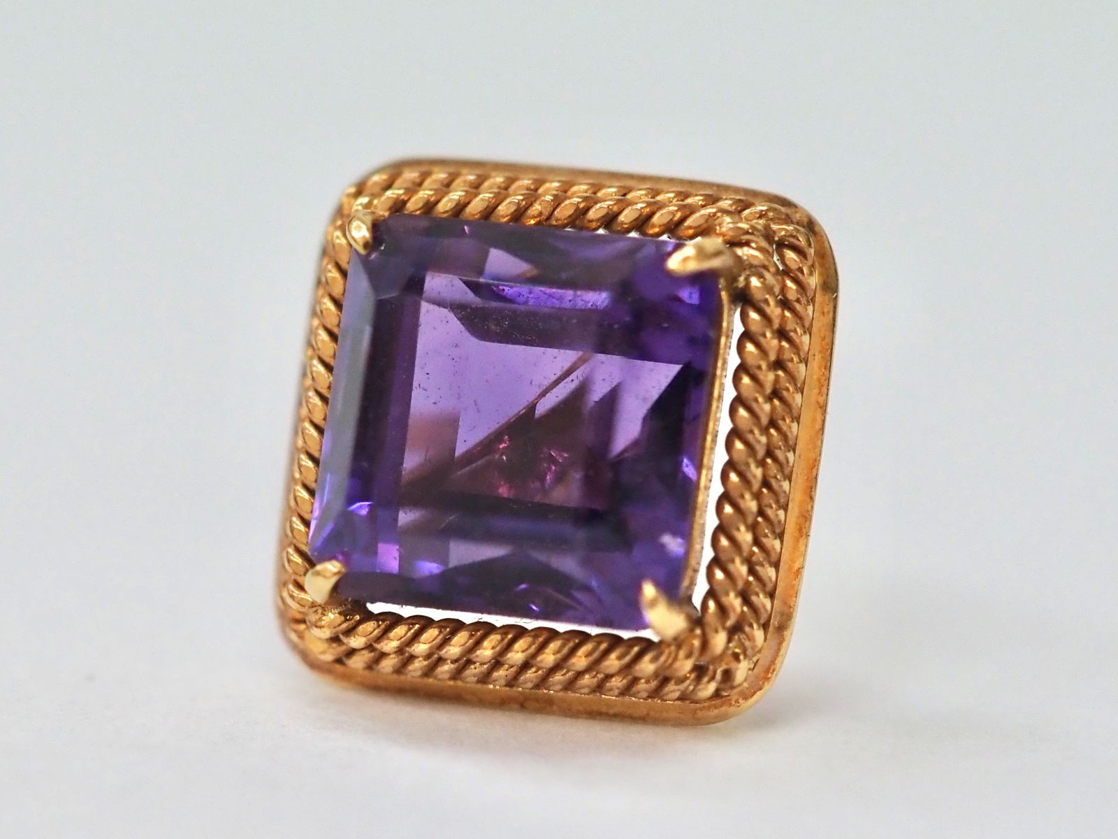 お客様が、お父様から譲り受けられましたK18製アメシストのタイタック(下写真)と、