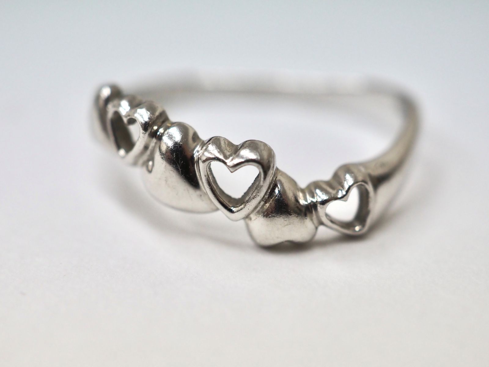 以前に、お父様からの贈り物で、想い出の詰まったプラチナ製の指輪(下写真)を再利用して、プラチナ製の指輪へとジュエリーリフォームさせて頂きました。