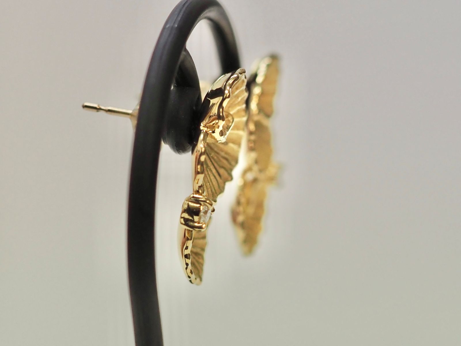 ピアス金具への変更には、イヤリング金具を取り除き、ピアス針を溶接する必要がありましたが、ダイヤモンドが付いている為、バーナーでの通常溶接ではなく、レーザー溶接をいたしました。