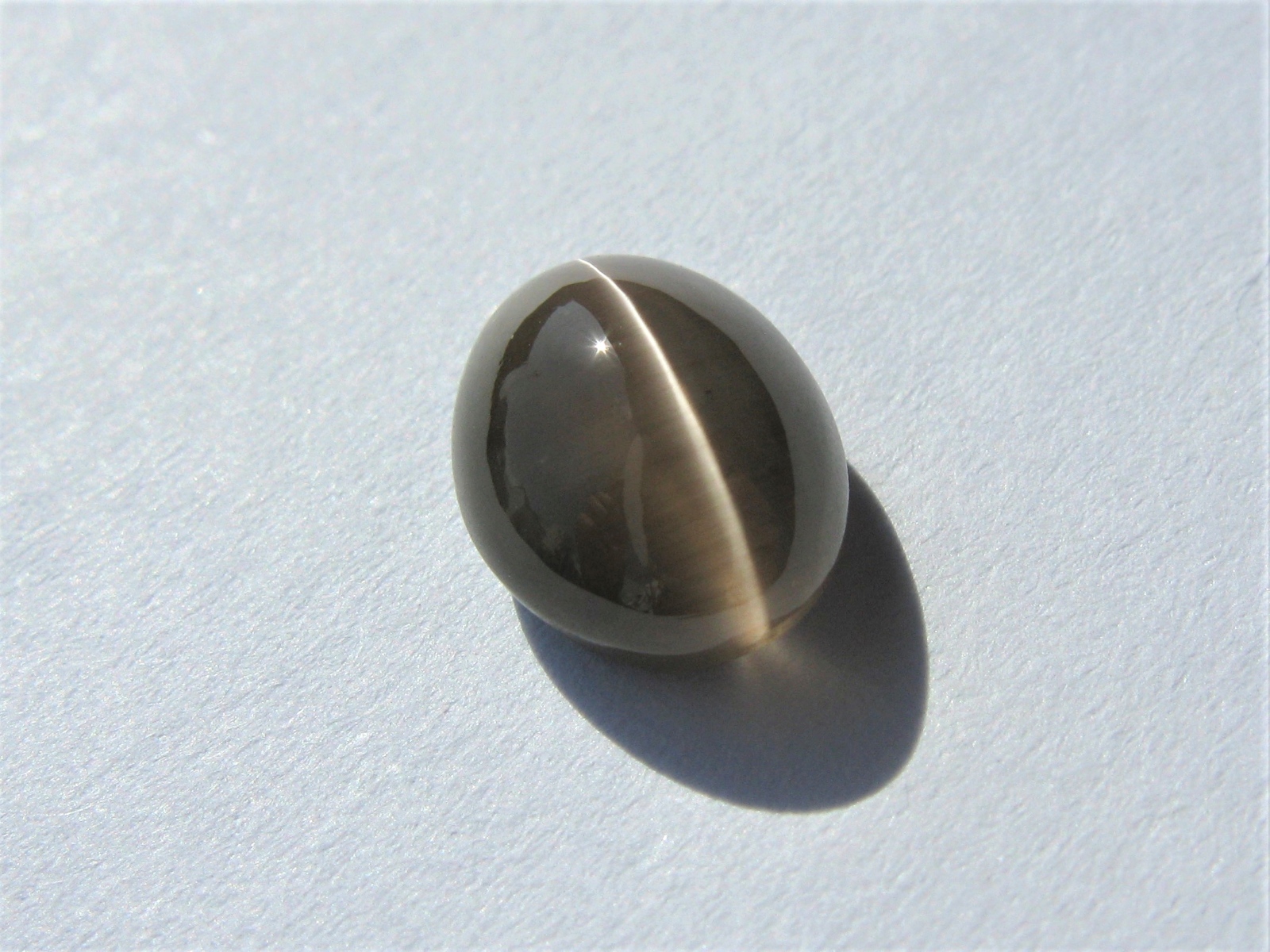 キャッツアイとは、針状のインクルージョン(内包物)や平行繊維状組織をもつ宝石に光が集まり猫の目の様に光の筋が現れる効果です。
